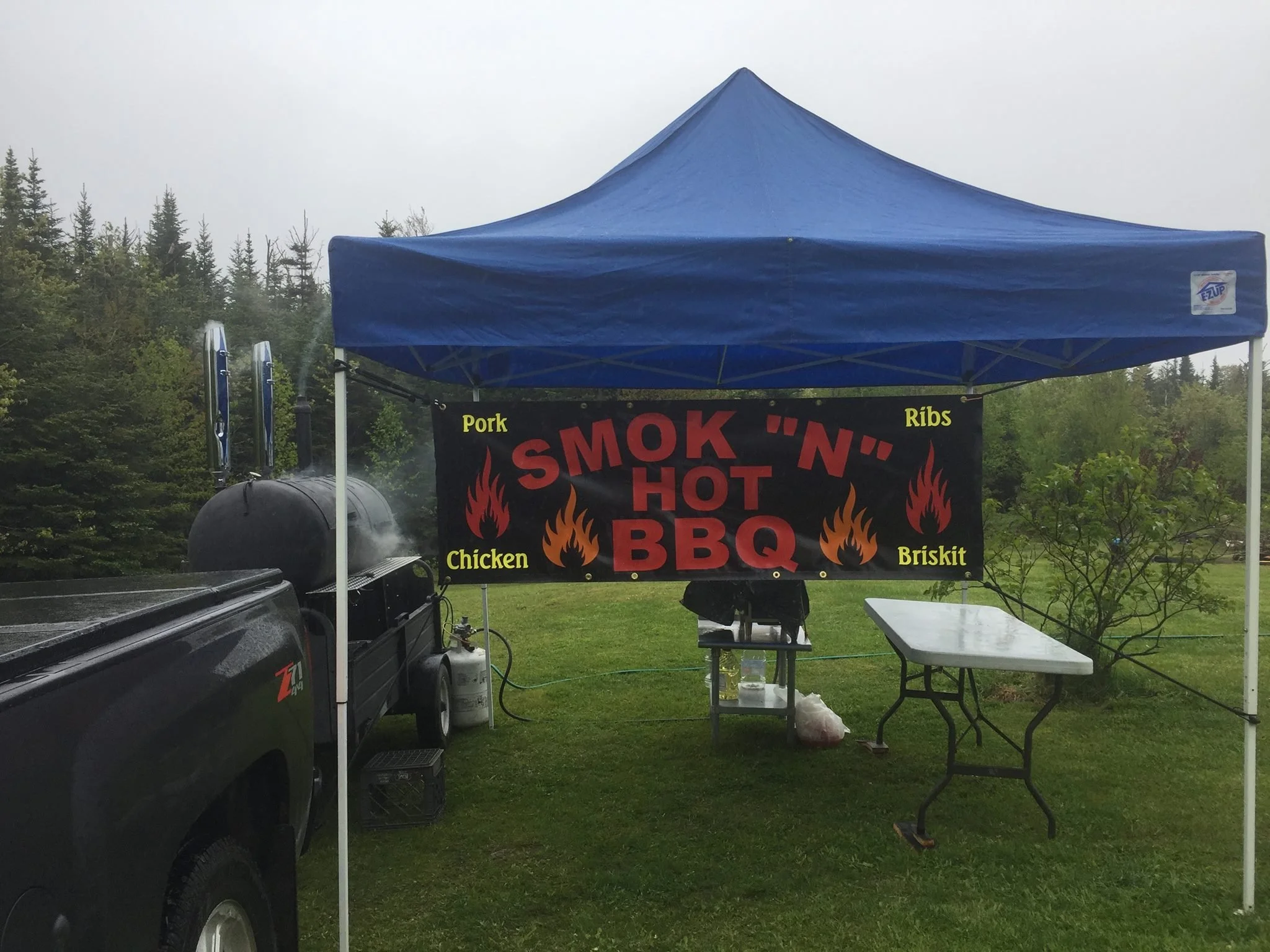 Smoked brisket open faced sandwiches/ Smoked baby back ribs.