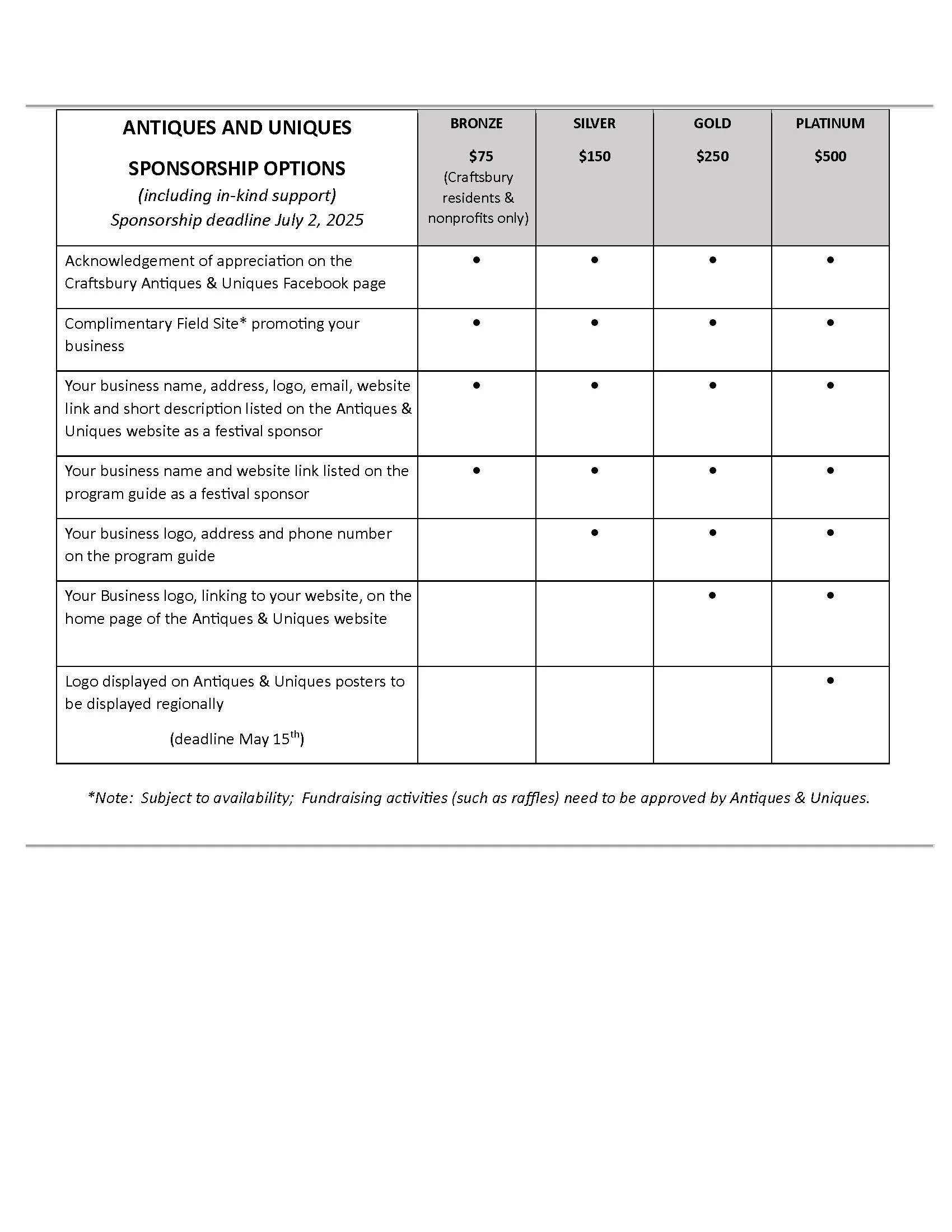The Town of Craftsbury is excited to announce the return of Antiques & Uniques on Saturday, July 12, 2025 for its 52nd year!